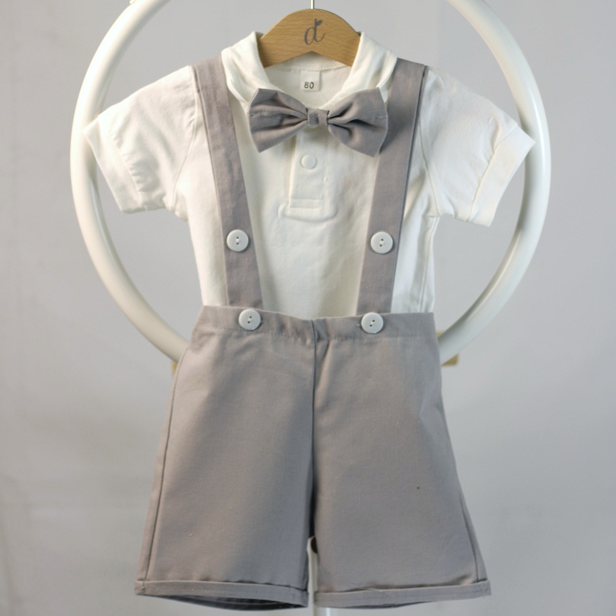 Traje de Bautizo Blanco con Gris, modelo Santiago.