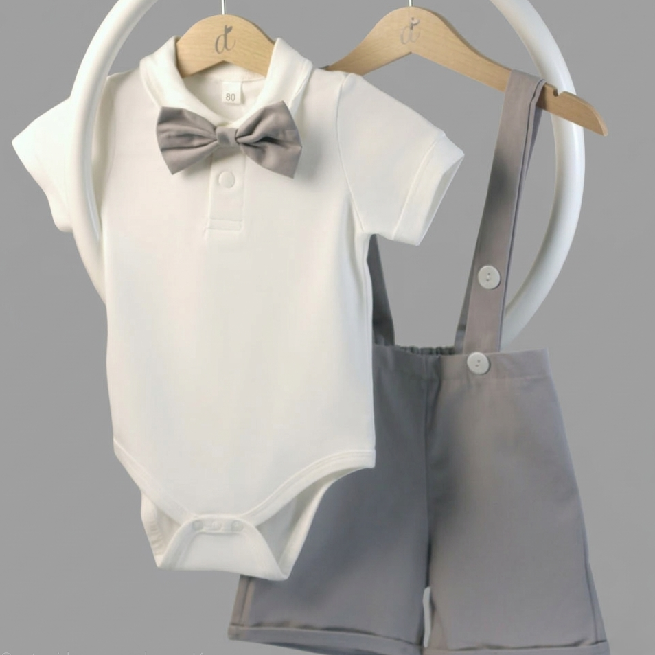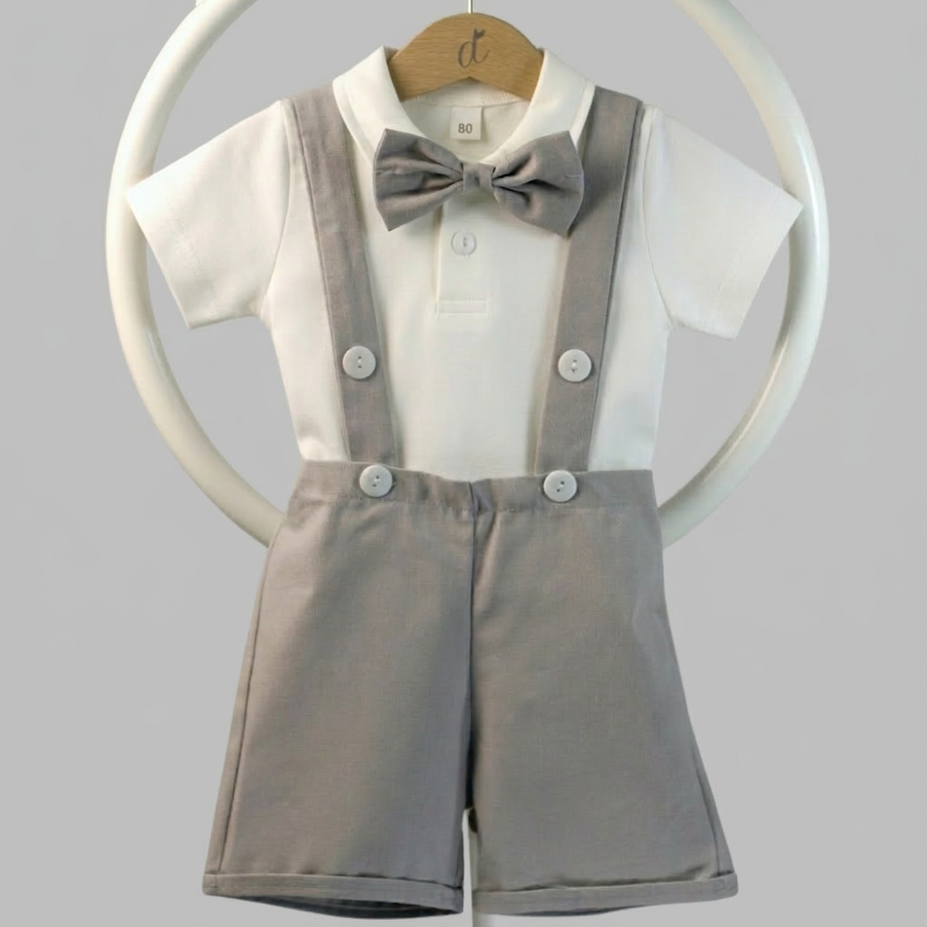 Traje de Bautizo Blanco con Gris, modelo Santiago.