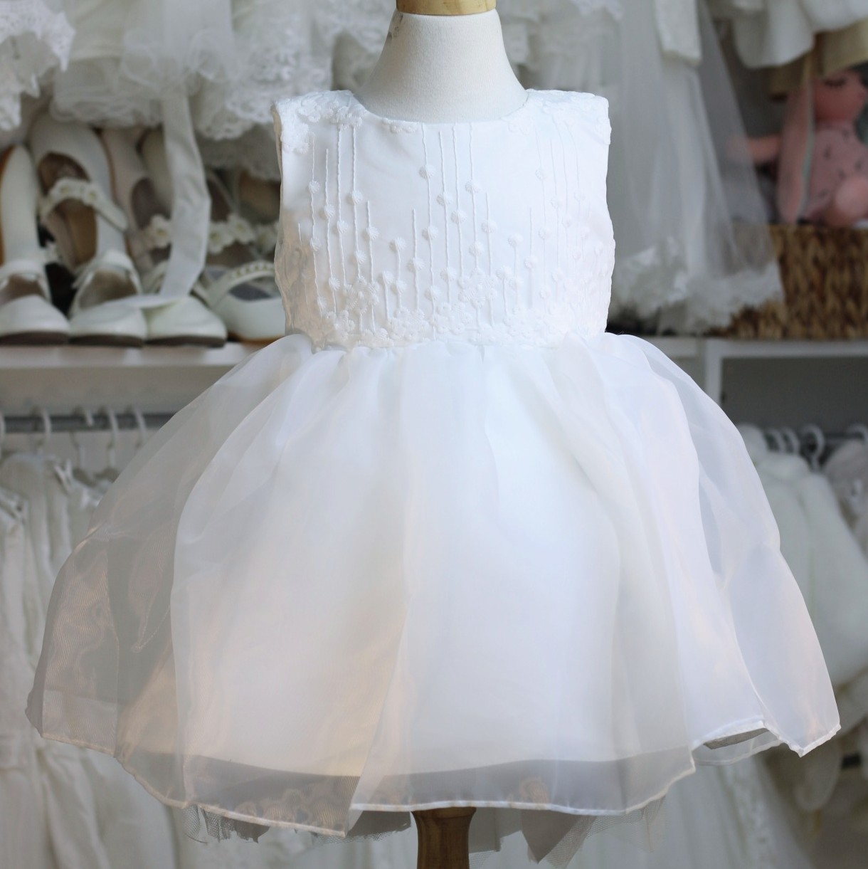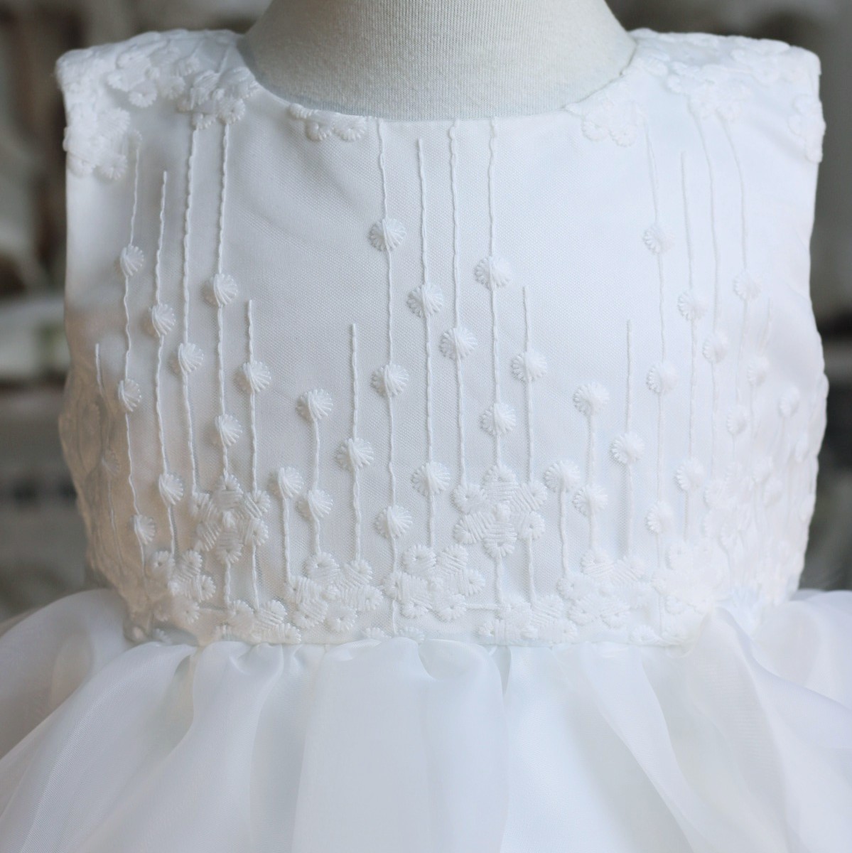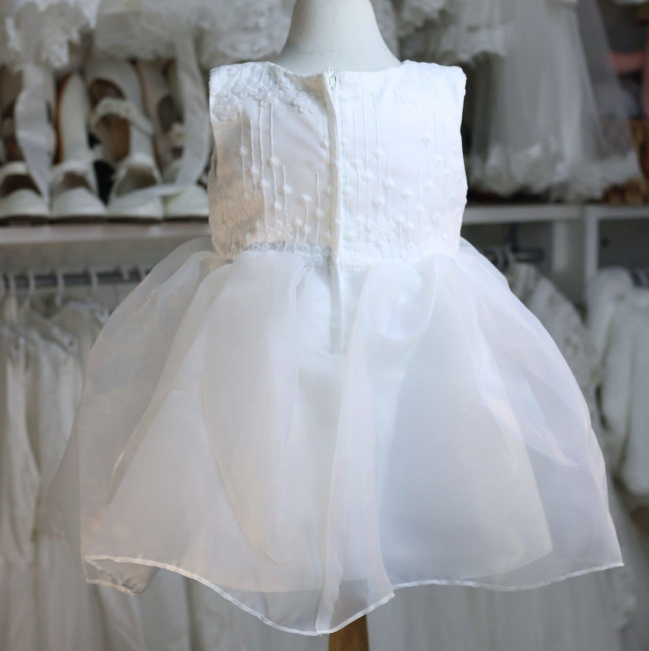 Vestido blanco para Bautizo con bordado en la parte superior.